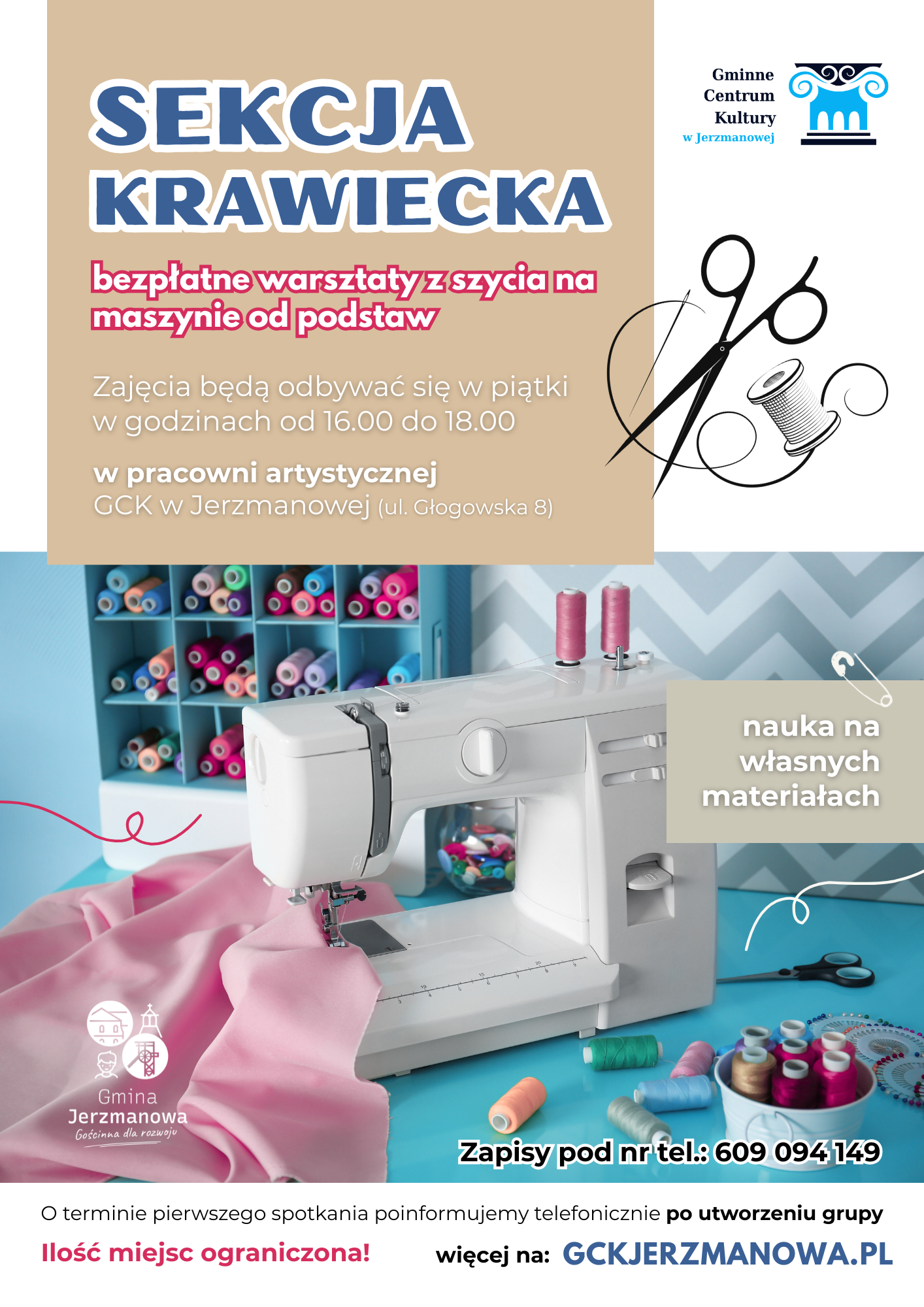 Gminne Centrum Kultury w Jerzmanowej zaprasza na bezpłatne warsztaty krawieckie dla osób początkujących.