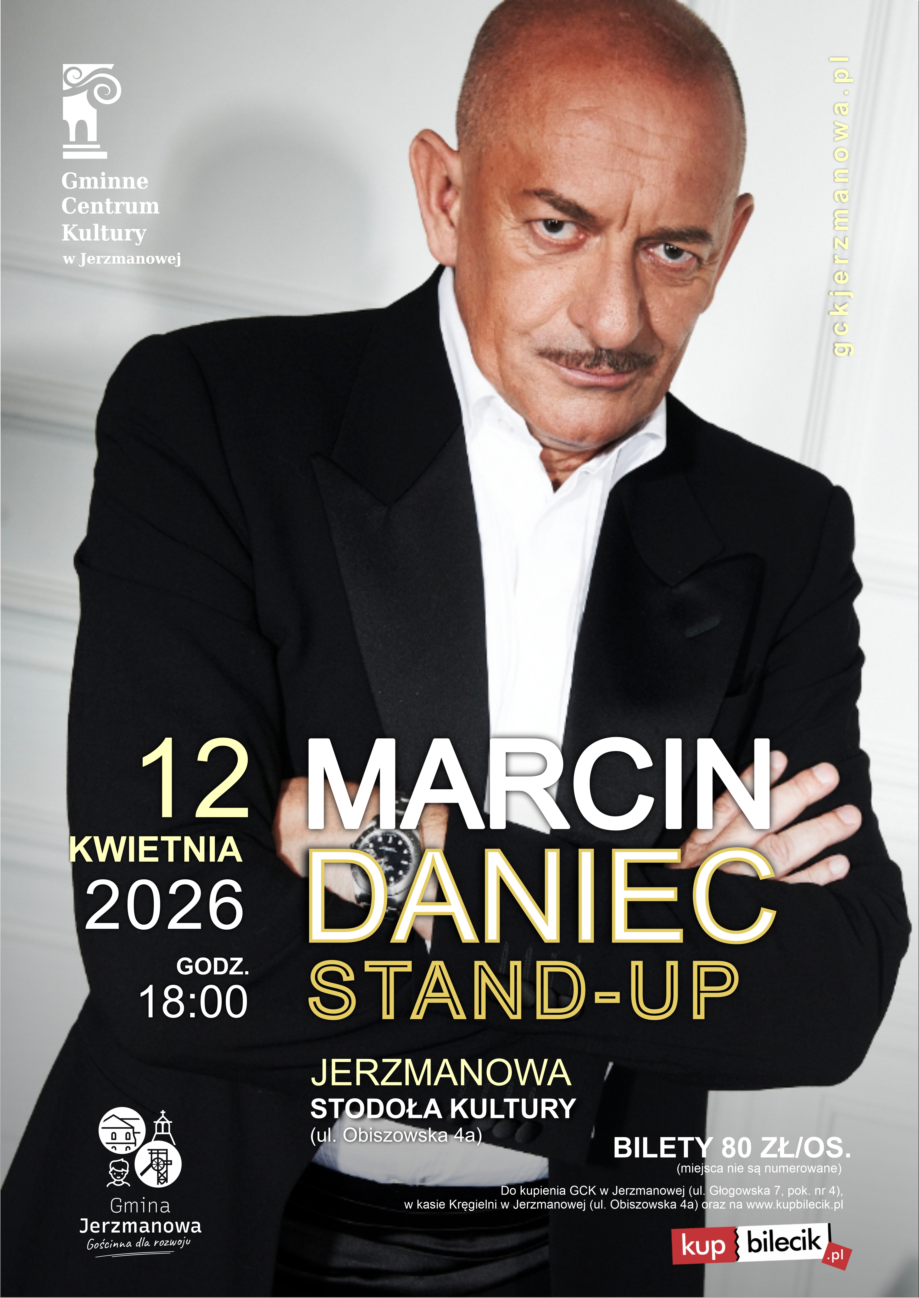 12 kwietnia 2026 roku o godzinie 18:00 w Stodole Kultury w Jerzmanowej wystąpi Marcin Daniec – jeden z najbardziej rozpoznawalnych i lubianych artystów polskiej sceny kabaretowej.